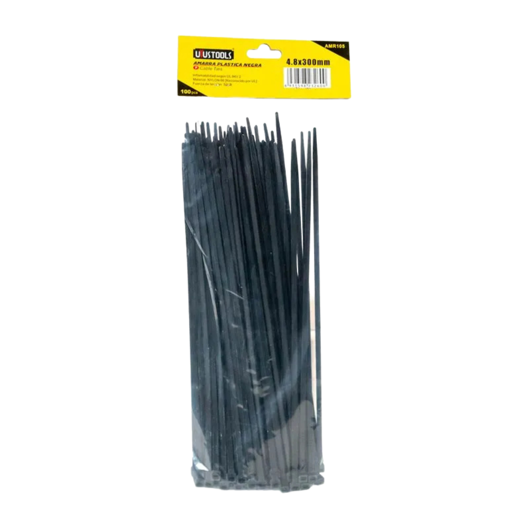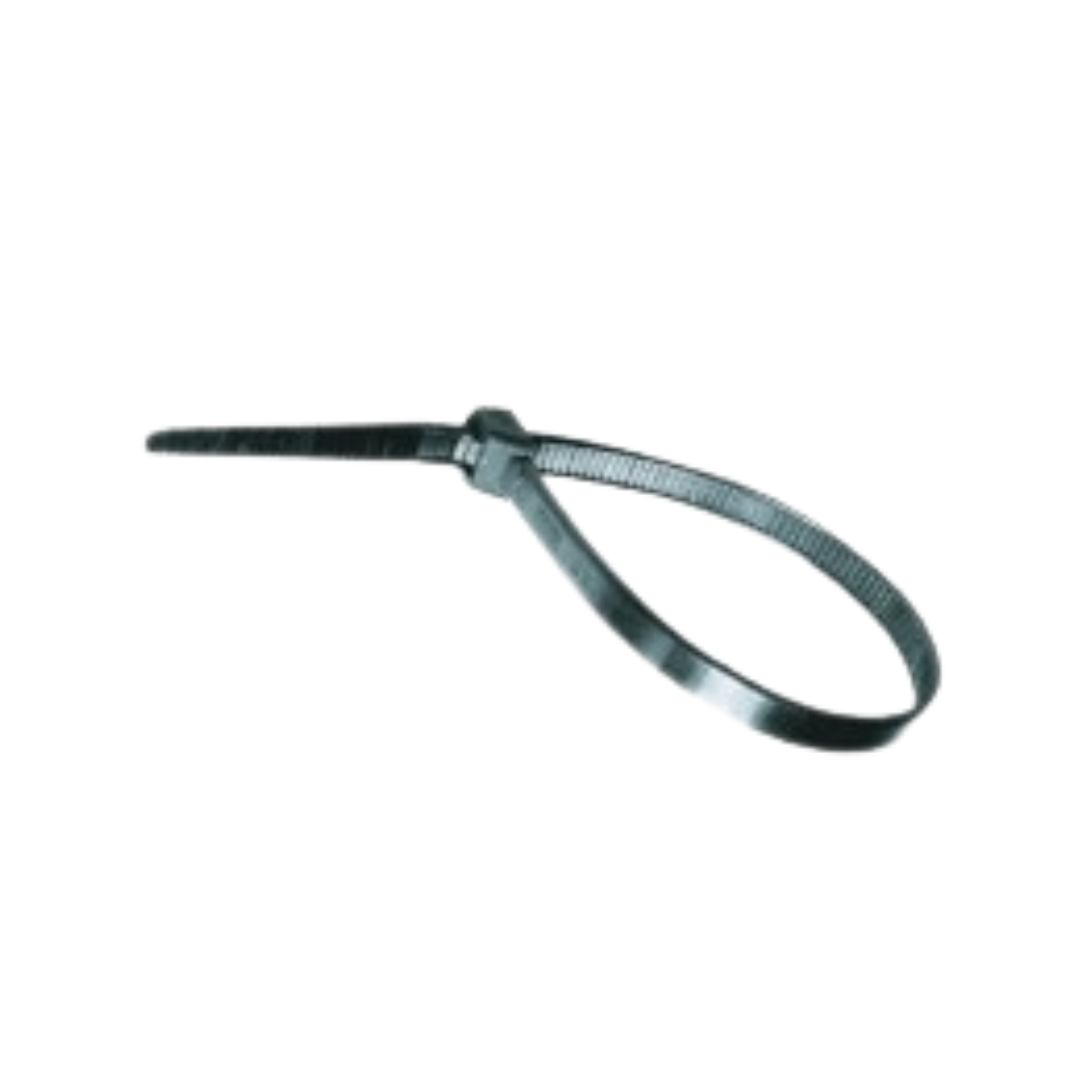 El amarre plástico negro está elaborado en nylon de alta calidad, ofreciendo gran resistencia y larga duración. Su color negro lo hace ideal para exteriores, ya que tolera mejor la exposición solar sin perder firmeza ni flexibilidad.